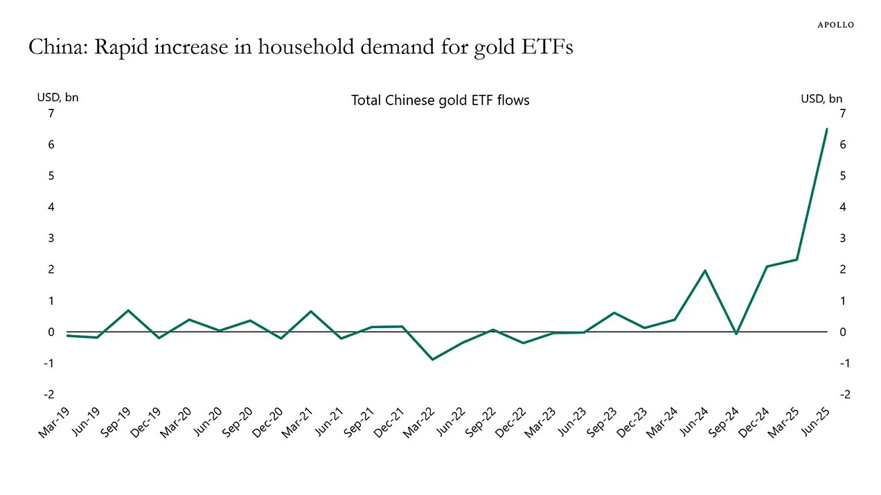 Net flows into Gold ETFs from China went from $0 to $7B in a quarter.