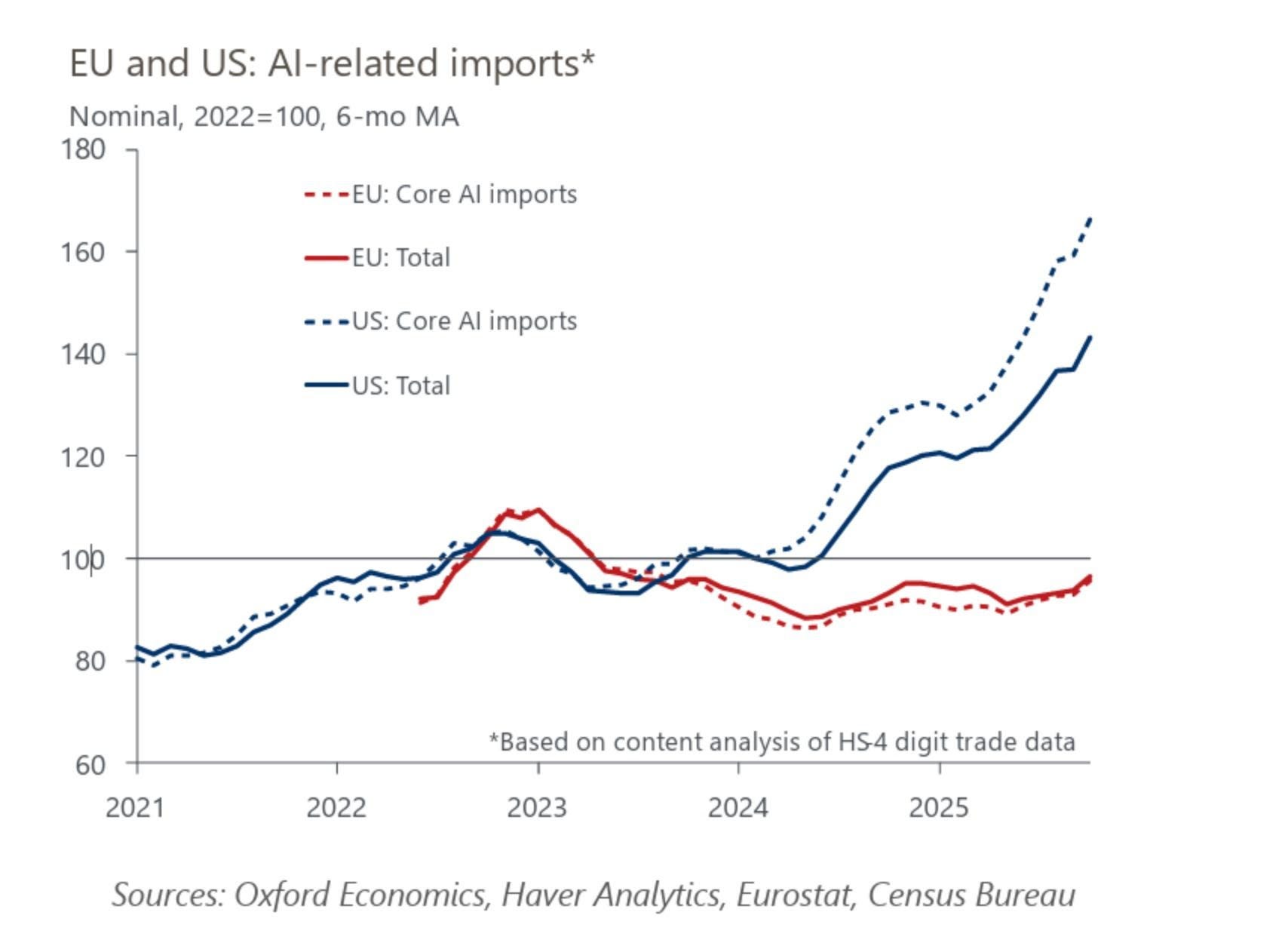 European “AI-related imports” are in decline from the ChatGPT starting point.