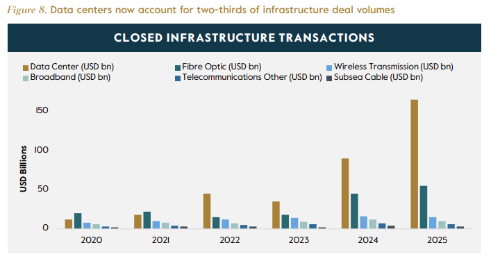 Data centers are now ~2/3rds of infrastructure related deal volumes.