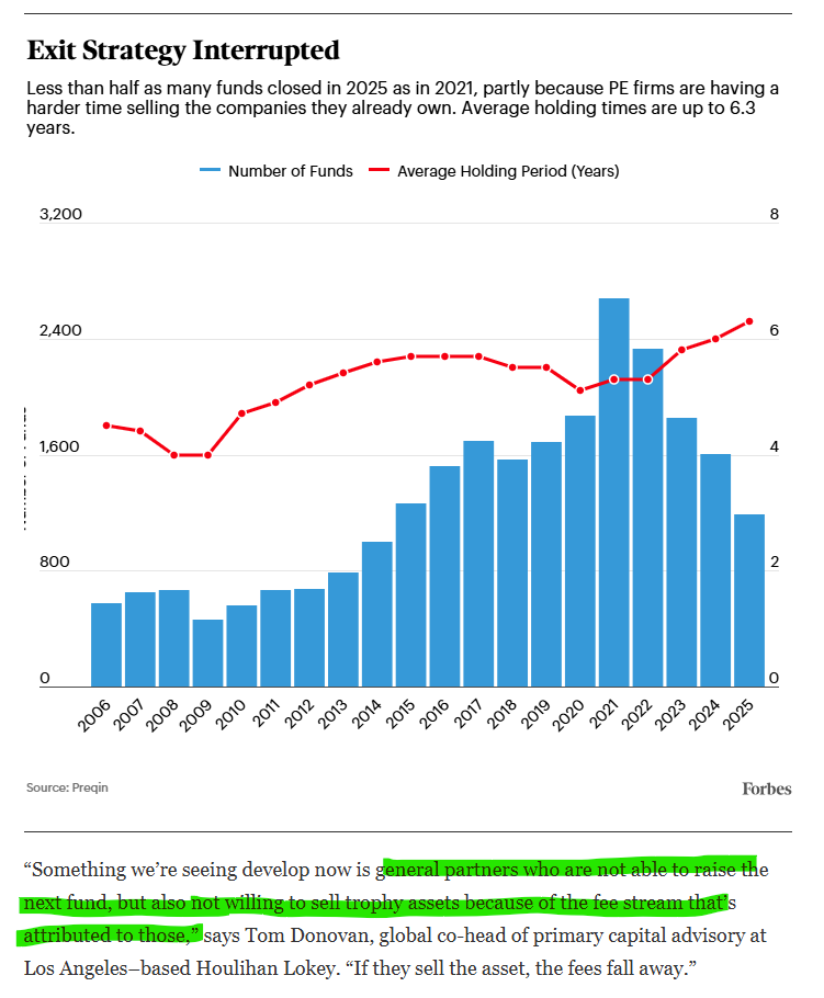 Somewhat as a follow-on to the chart-dive on PE, lots of readers sent me this Forbes piece on āZombie Funds.ā Itās got some more anecdotes related to the point, and it even has a list of 20 midsize zombies, struggling to raise their next fund.