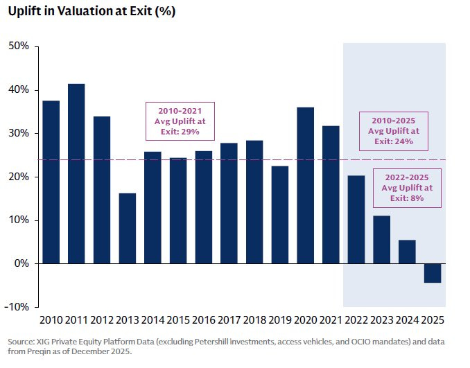 The average āupliftā on valuation at exit has been declining since ā22, and has now gone negative.
