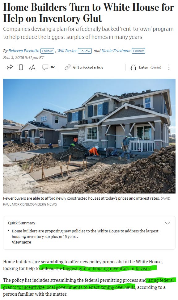 We need radical housing interventions to solve . . . āthe biggest glut of housing inventory in 15 years . . . using federal grants to incentivize . . . zoning reform.ā