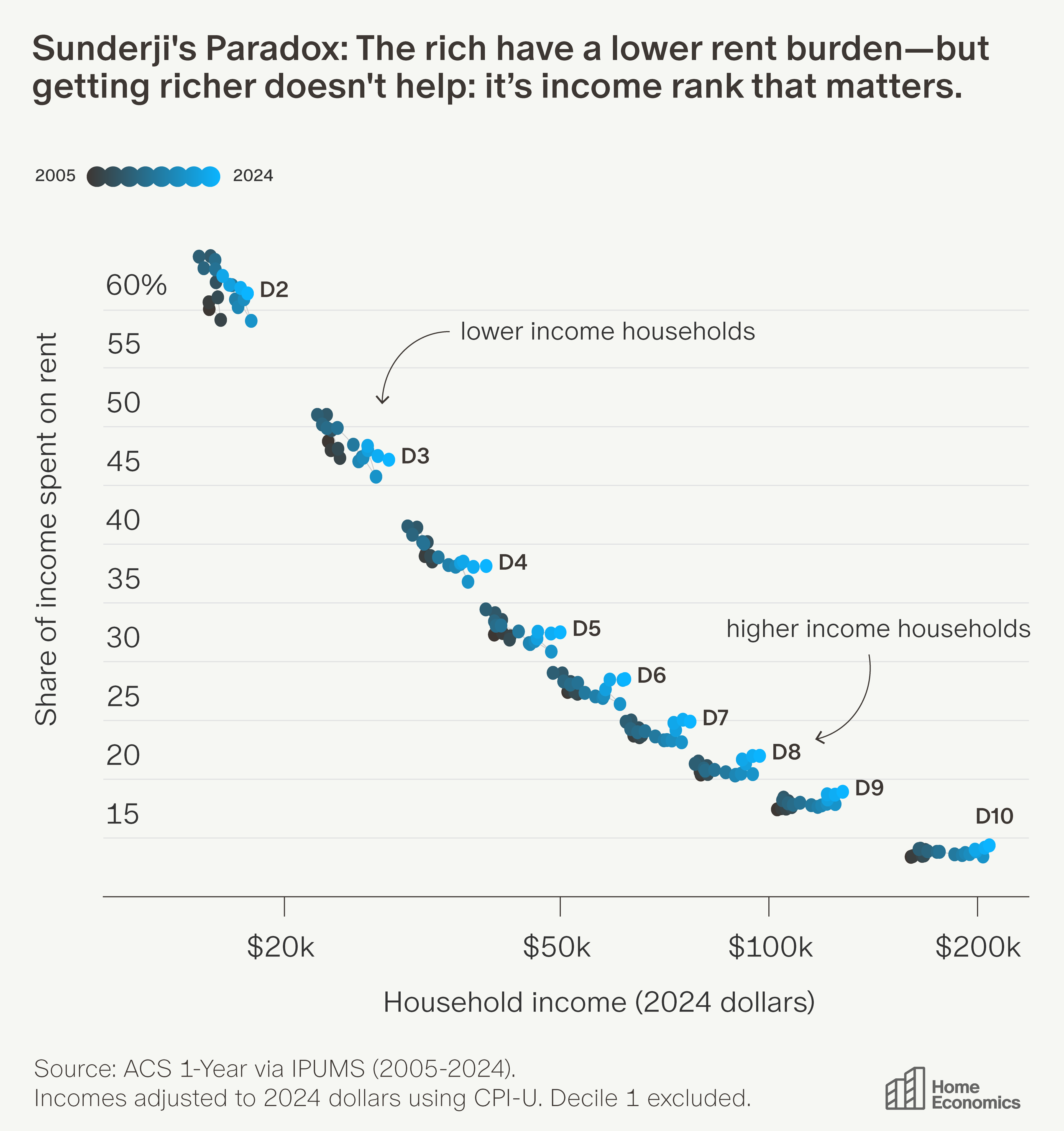The median household pays ~25-30% of income for shelter, and thatās been true for about 100 years, wherever you lookāin the US, Berlin, wherever.