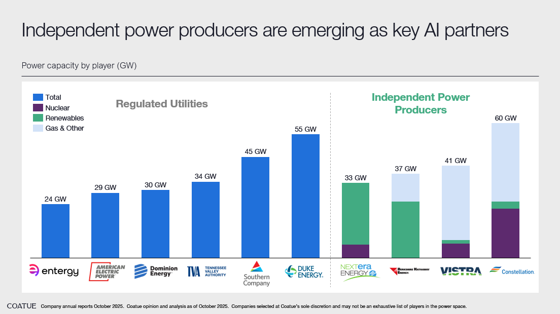 Independent power producers are an increasingly popular source of energy for data centers, relative to the traditional grid.