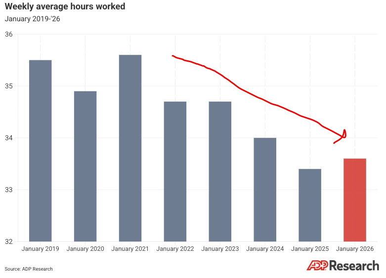 Workers appear to be working ~2 fewer hours per week than they were before the pandemic!