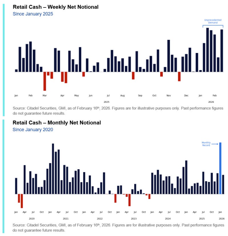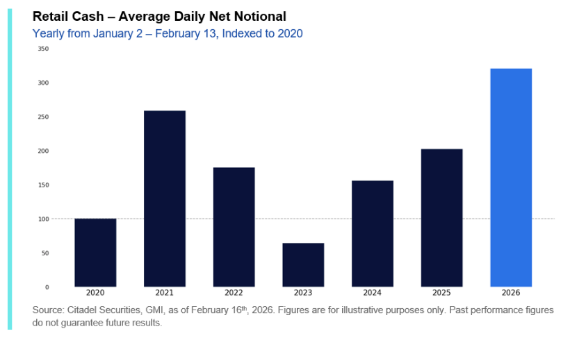 Retail daily notional cash option trading is nearly 2x the 5-year average, 3x what it was in 2020, and ~60% higher than last year.