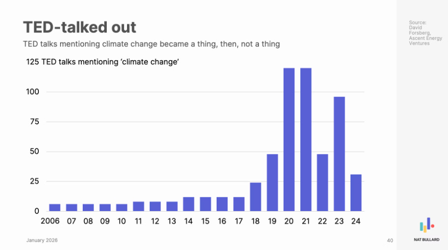 “Climate change” was all the TED-talk rage for about 3 years, and now it’s not quite so compelling anymore.
