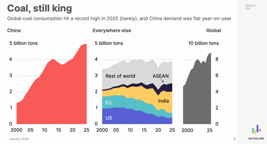 The good news is that the growth of coal consumption does appear to be slowing down (especially in China, the biggest offender). The bad news is that progress in the US appears to have stalled out a bit.