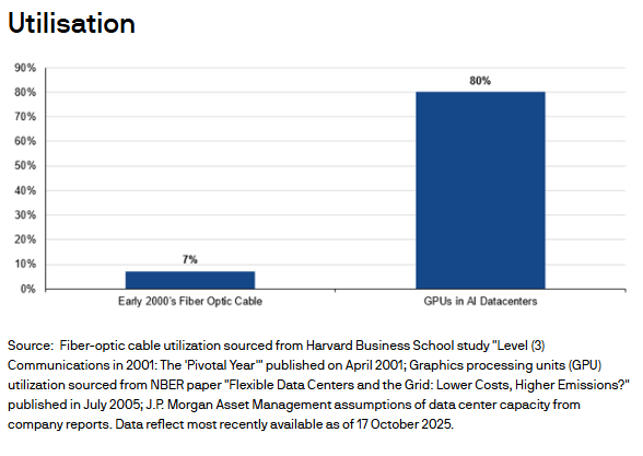 The utilization contrast between Dotcom fiber and present-day GPUs is staggering (and comforting).2