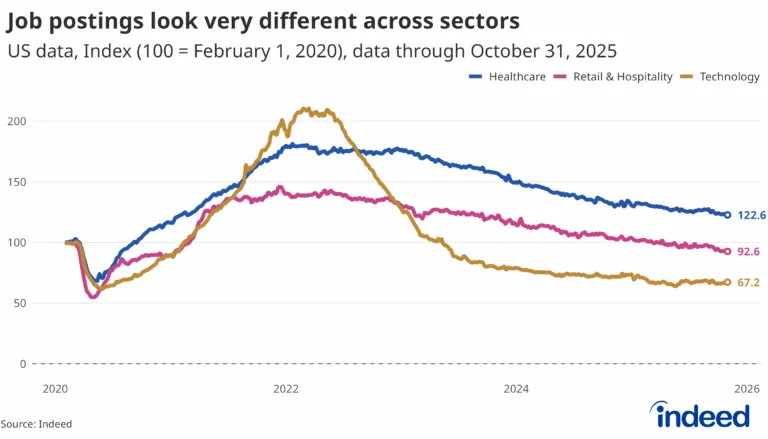 Healthcare job postings are still ~23% above the pre-pandemic trend.