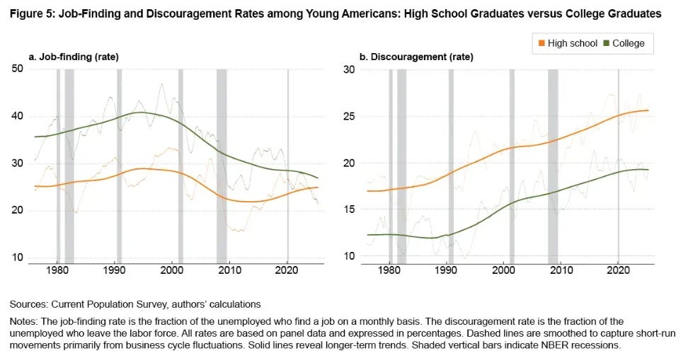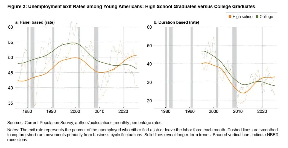 Likewise, non-college job-finding rates perked up ~2016, while college job-finding continued to slide.