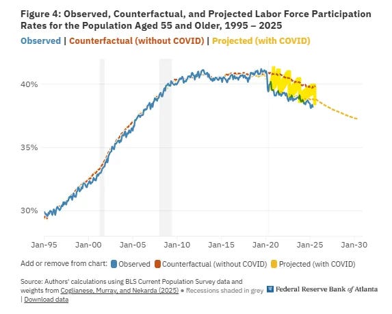 In addition to the structural changes around White Collar Stagnation (as per above), part of the issue (I think), is that old folks are working longer.