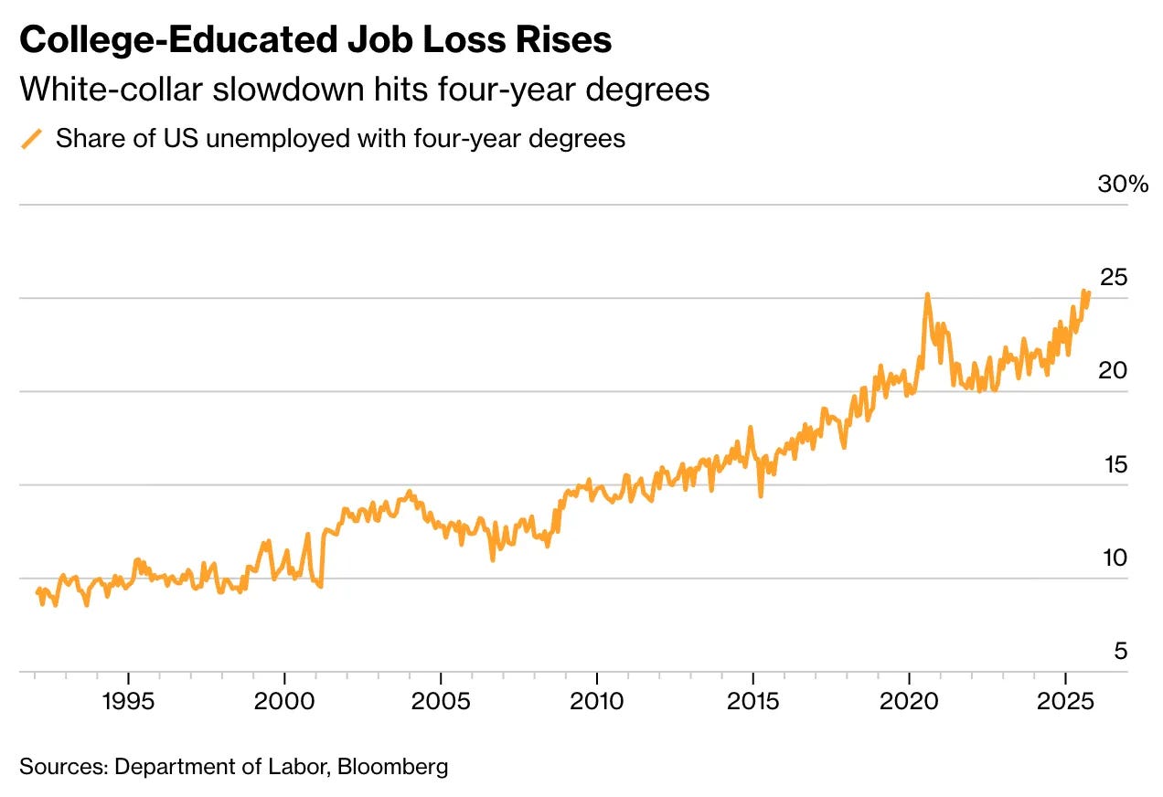 The college-educated share of unemployed is now at an all-time high of 25%.