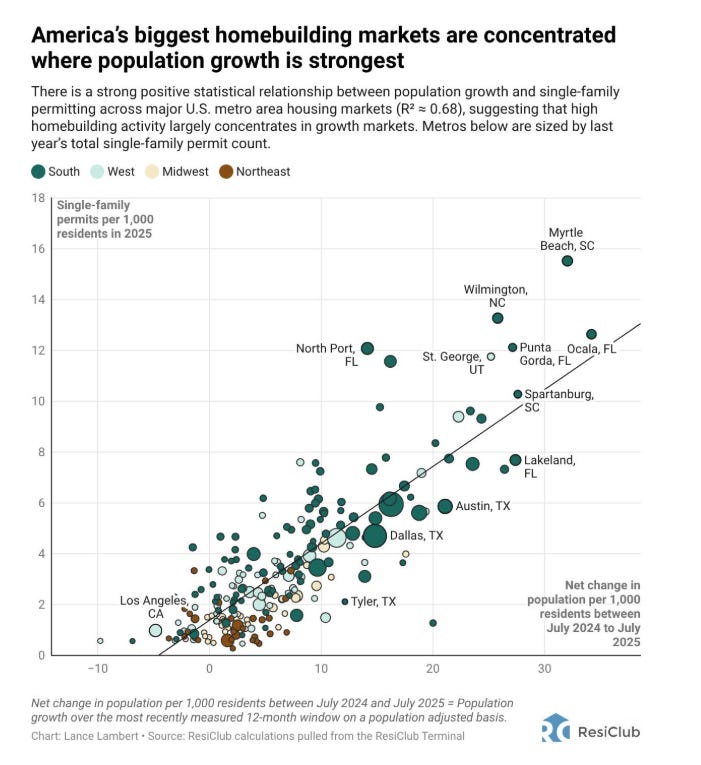 Single-family permitting goes to where the people growth is, and if you think causation is running the other way, well, idk what to say.