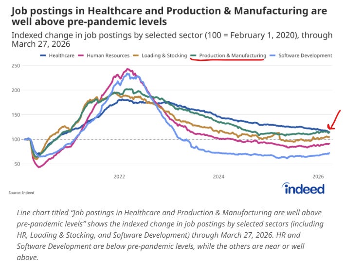 Outside of healthcare (of course), manufacturing and loading & docking are the only sectors with above-trend job postings: