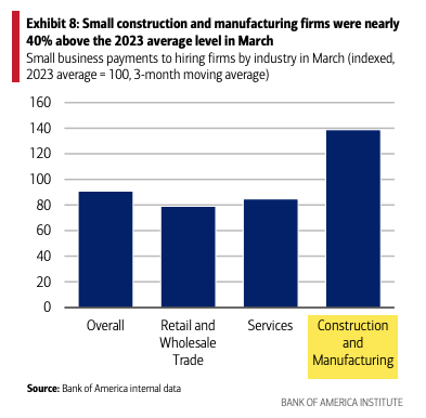 Construction and Manufacturing small businesses were the only small businesses paying more to hiring firms than they were in 2023: