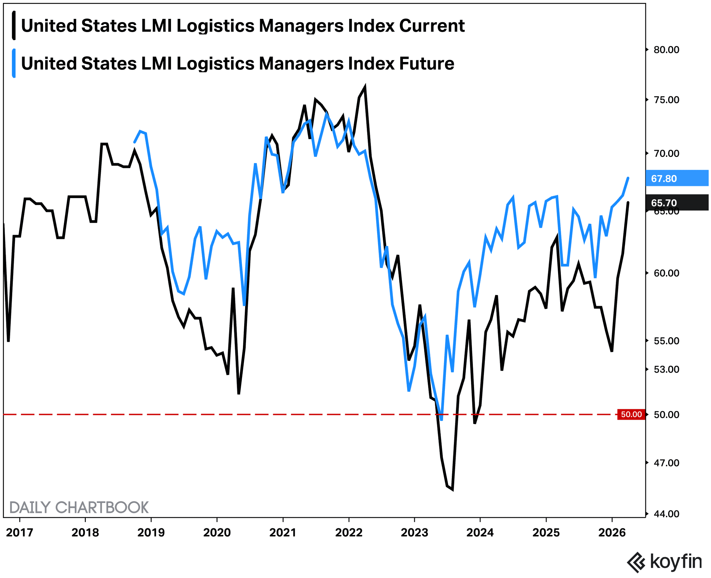 The rising demand for blue collar stuff flowed through to the freight market, as well (via Freight Alley):