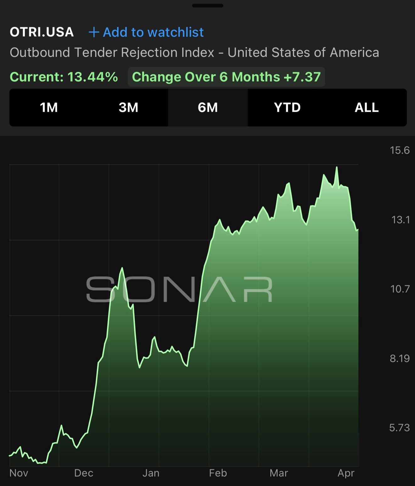 Tender rejection rates (where a high rejection rate is usually evidence of tight supply) has climbed significantly: