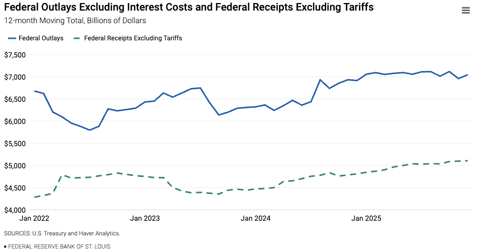 If you net out interest expenses, federal outlays actually did flatten out a bit, for what it’s worth.