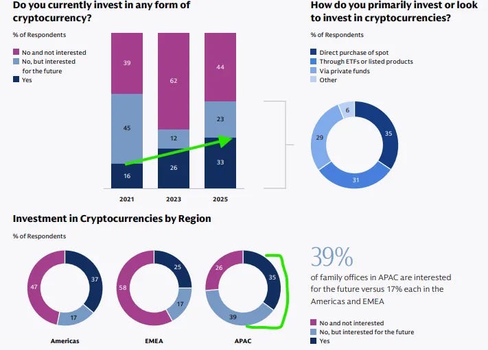 “Yes, we hold crypto” have doubled in two years, from 16% to 33%.