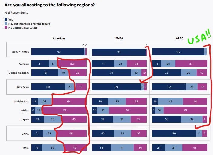 And while every region has some homerism, European investors are more likely to say “no” to Europe, than to say “no” to the US, just like APAC investors are more likely to say “no” to China, than “no” to the US.