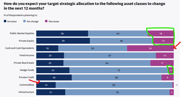 The increases outweigh the decreases for all of PE, public equities, and hedge funds.