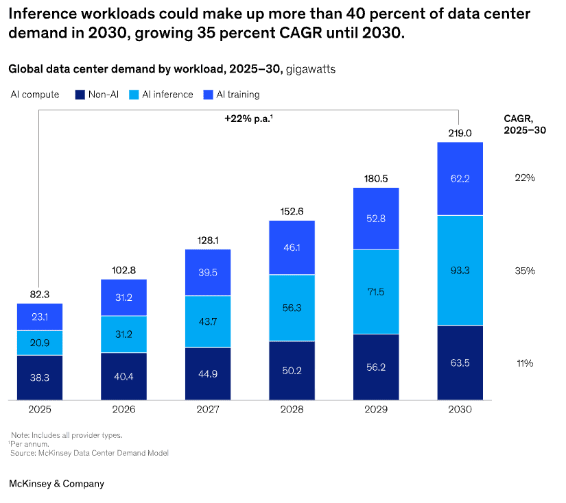 Inference “could make up more than 40% of data center demand in 2030, growing 35% CAGR.”