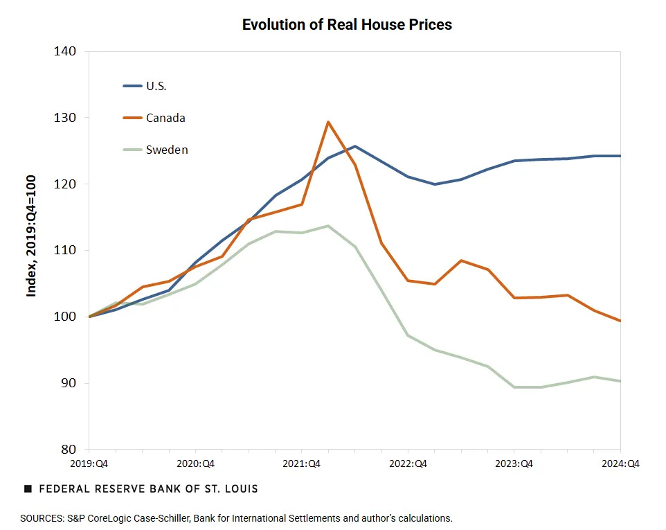 Sweden and Canada, where shorter-term and adjustable rate mortgages predominate, real home values are either breakeven or lower.