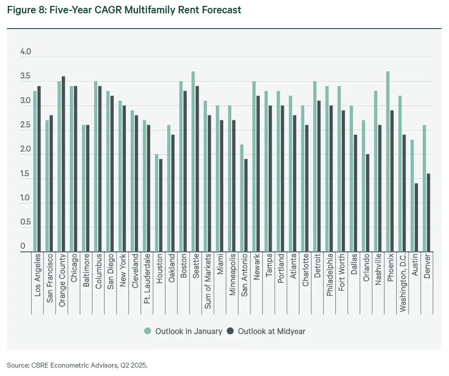Every major market (except SF, LA, and Orange County) just got a downward revision in estimated rent growth.