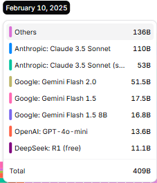 If you want to know which LLM models are most popular, one way to do it is count tokens—the base unit of text that LLMs process and output.