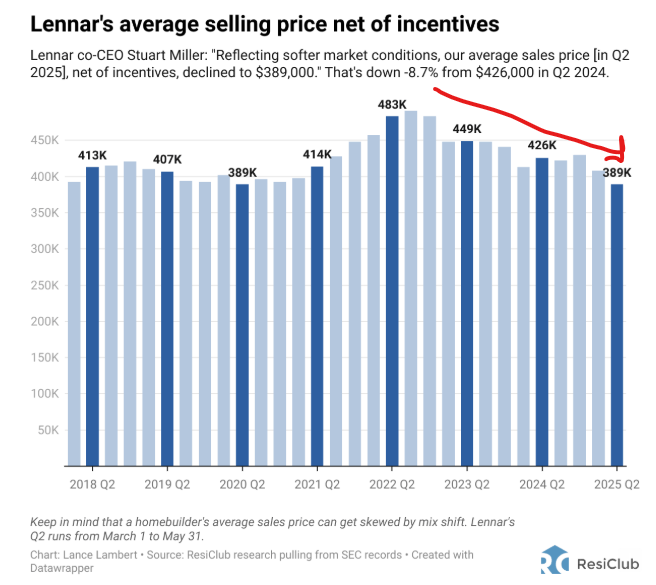 The homebuilder Lennar LEN 0.00%↑ reported this week to confirm what we already knew: home values are coming down, and have been for a while.