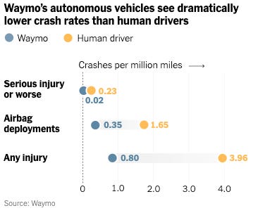 The relative safety of self-driving waymos is a really big deal: