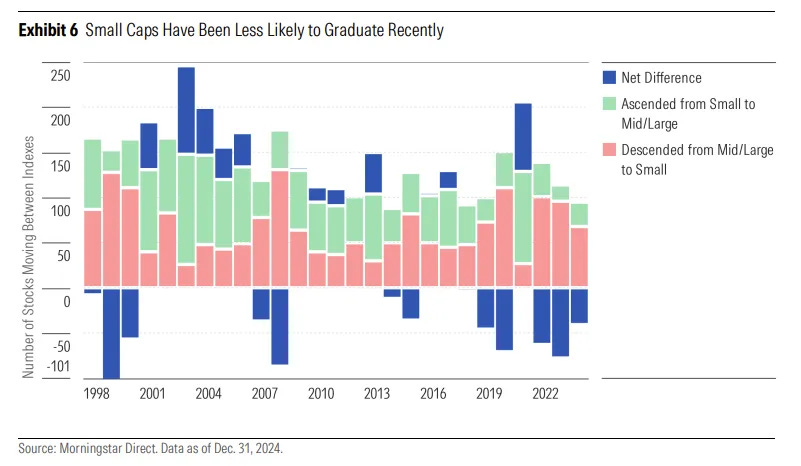 The number of companies that have “descended” to small-cap status, has outweighed the number of small companies that have “ascended” to large-cap status, for the better part of a decade.