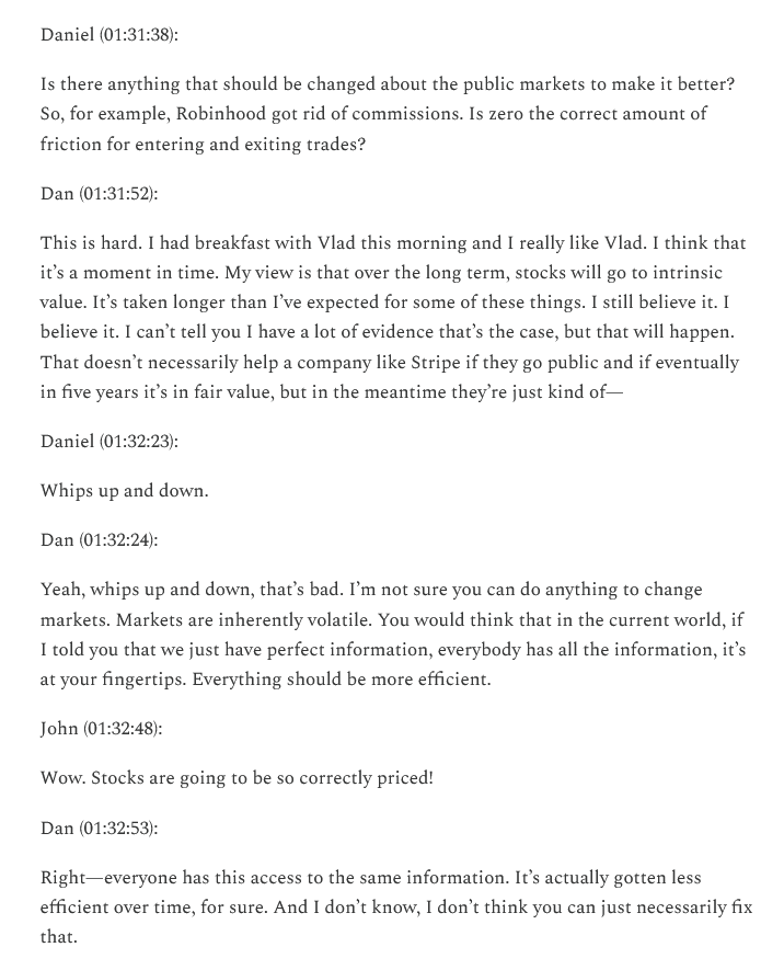 Indeed, Dan Sundheim, CIO of D1 Capital, made the point succinctly in his (otherwise fun) conversation with none other than John Collison (of Stripe):
