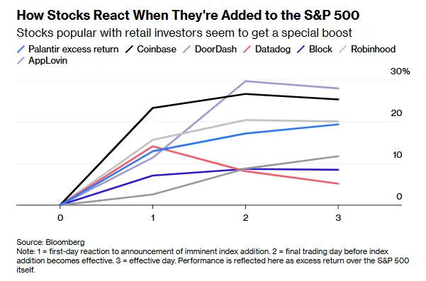“Retail” favorites, which also all happen to be venture-backed technology companies, get outsized returns upon their inclusion to the index.