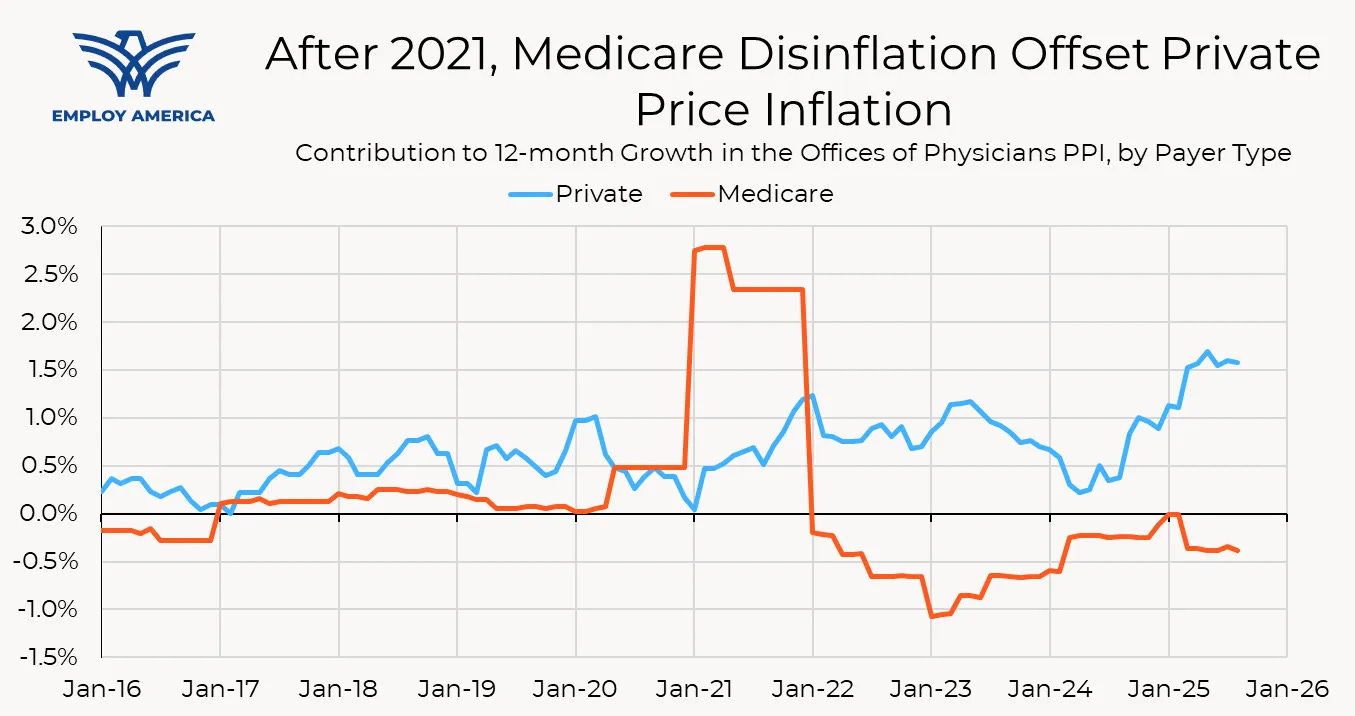 Medicare has been steadily disinflationary since January 2022, again, in contrast to Private prices, which have accelerated substantially of-late.