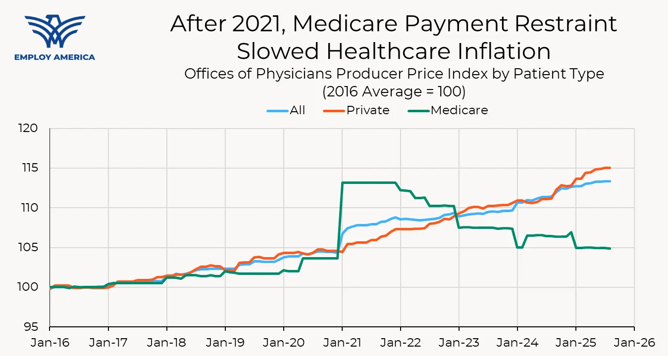 Private healthcare costs have gone up, while Medicare costs have stayed relatively flat: