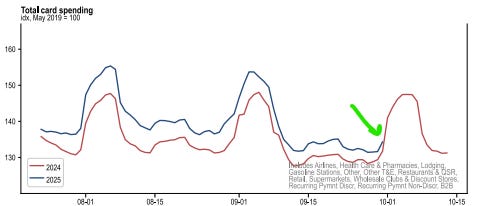 I’m less worried about the government shutdown, or tariff pass-throughs, and much more worried about the potential sticker-shocks of rising energy costs and the huge can of ‘healthcare’ costs that Obamacare tried kicking down the road (making them bigger and bigger), but will reveal themselves if/when subsidies disappear.