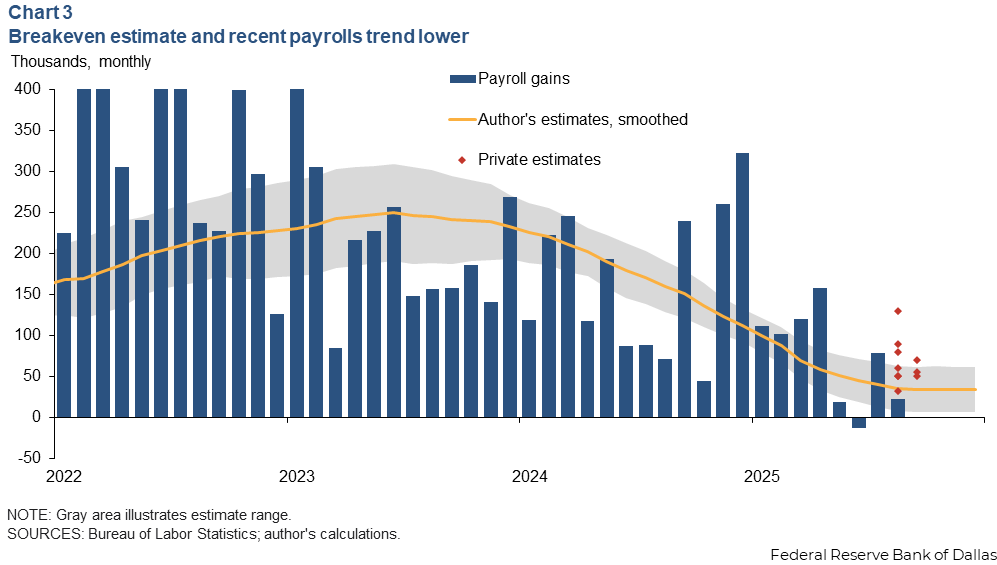 Right on cue, the Dallas Fed has estimated a dramatically lower breakeven, now that immigration (and participation rates) has slowed: