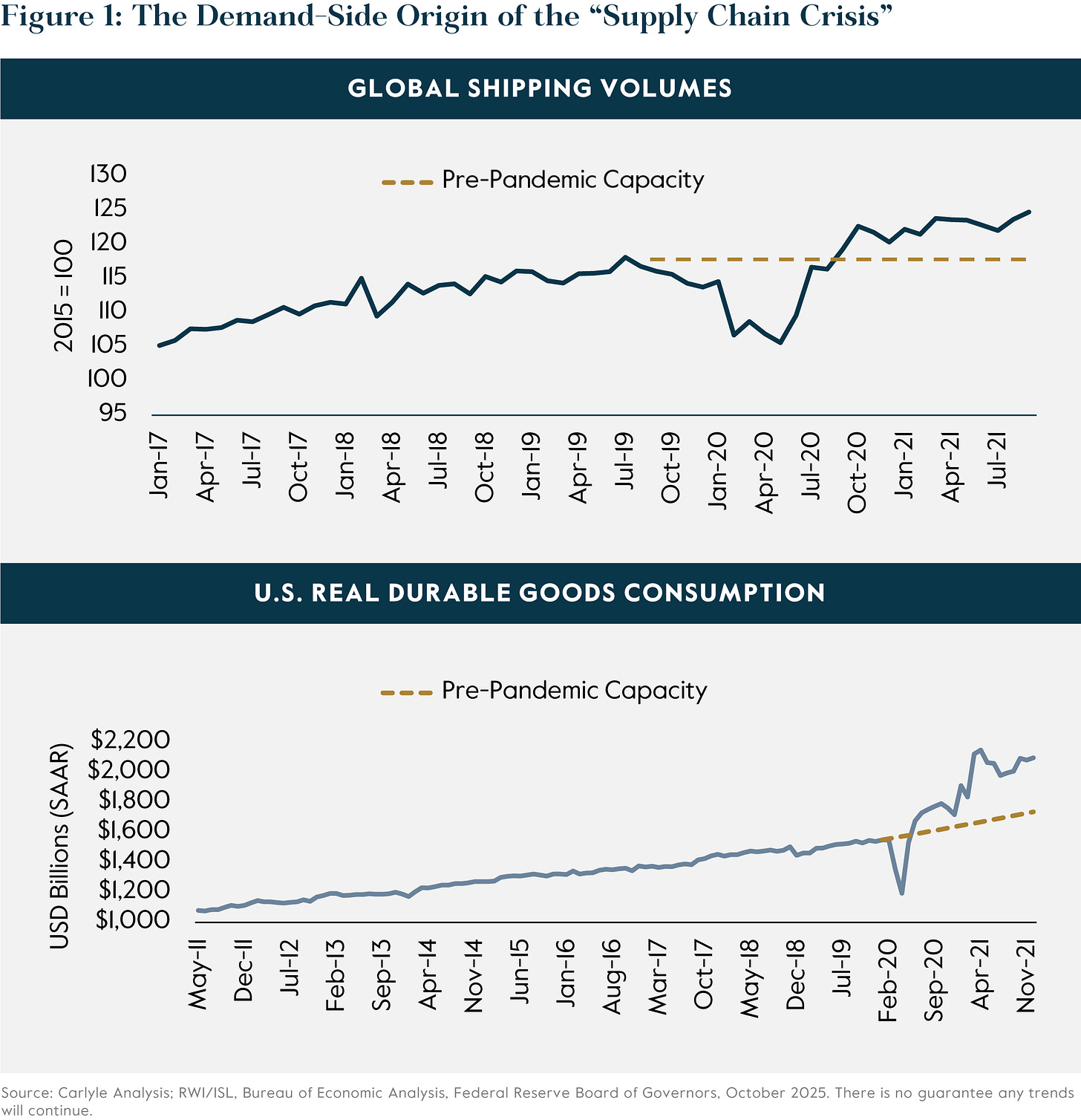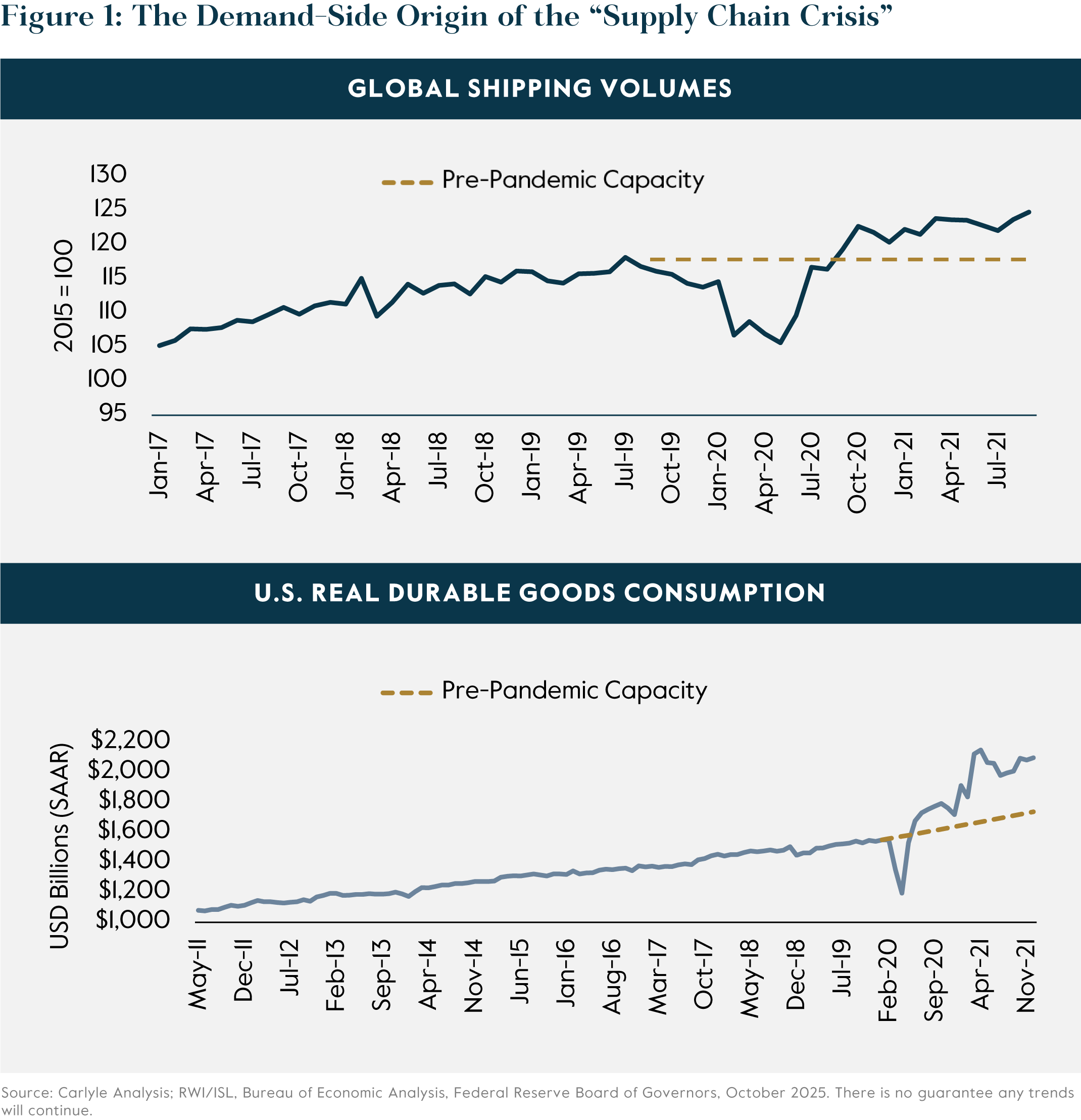 The Fed diagnosed inflation’s 2021 outbreak as “transitory” because it seemed to originate from pandemic-related supply disruptions that would resolve over time. Looking back on the data, it doesn’t appear that the “pipes” of the global economy were clogged so much as we were trying to jam too much “stuff” through them