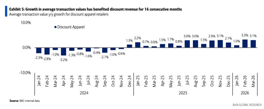 Average transaction values at discount stores has been growing at a healthy clip since the middle of 2025.