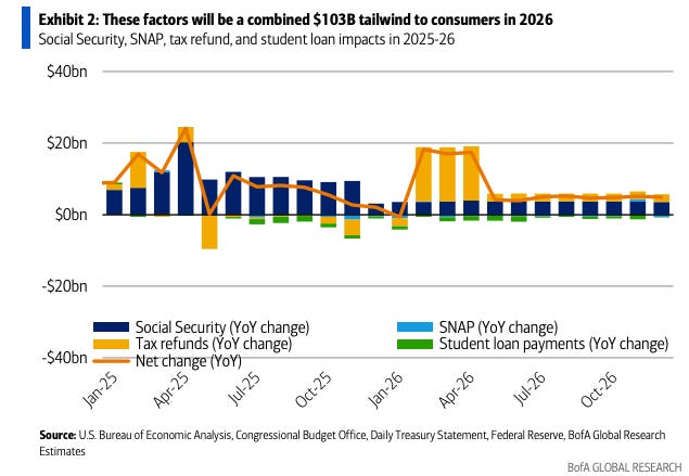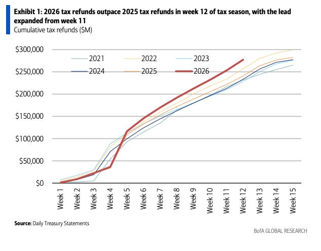 Tax refunds are running ahead of years prior, and other stimulants may be helping the Almighty Consumer along.